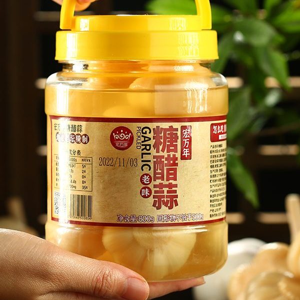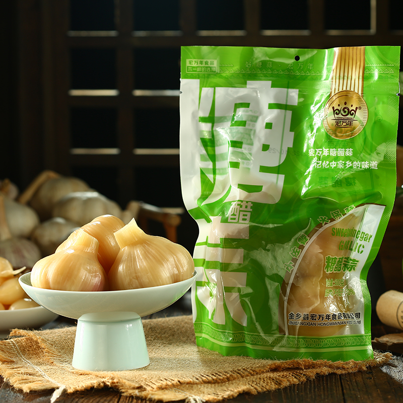 宏万年糖醋蒜,源自中国大蒜之乡 —— 金乡。这里的大蒜,得天独厚,蒜香浓郁,颗颗饱满。