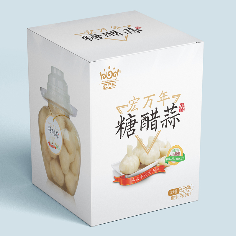 宏万年糖蒜选用中国大蒜之乡山东金乡盛产的紫皮大蒜为原料,个头大,肉紧实,非常适合用来腌制传统美食糖醋蒜;宏万年食品作为中国蒜制品行业的佼佼者,是国内为数不多具有出口资质并从业二十年以上的蒜制品行业深加工企业,糖醋蒜作为我们的主推产品,配方经过多次改良与完善,在市场销售竞争中一直处于前列位置。